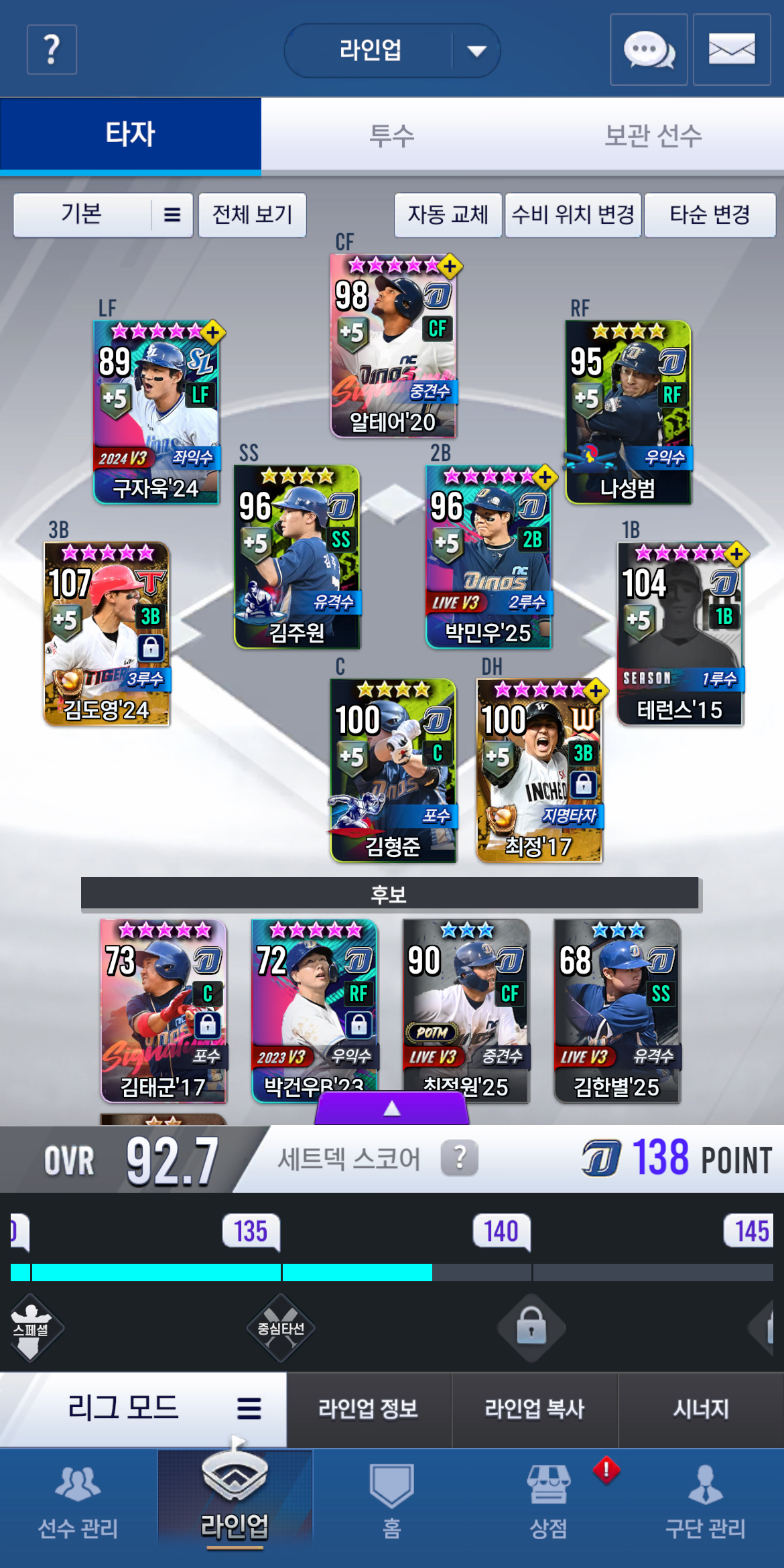 17최정으로 가려고 합니다 현재 덱에서 18전준우 5강만 찍고 사용 중입니다.