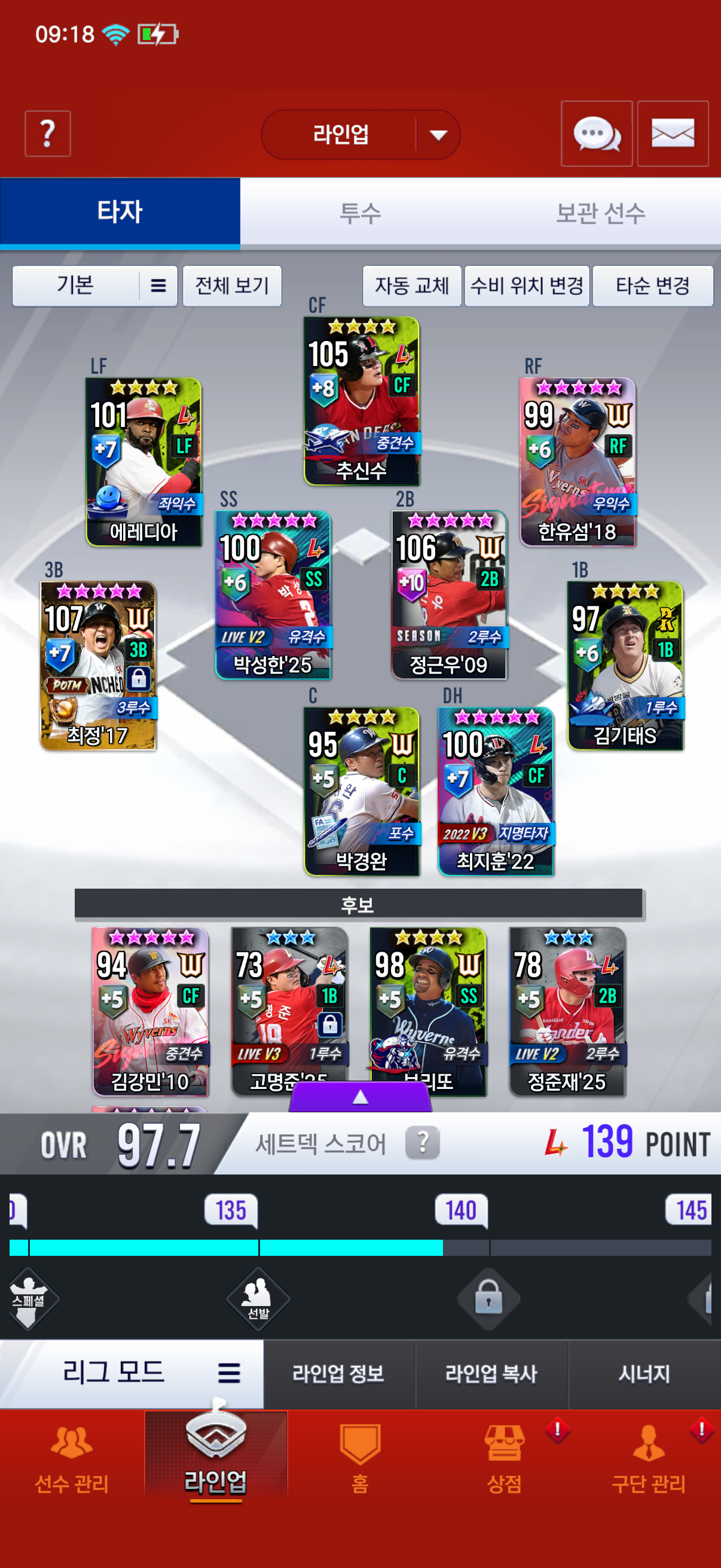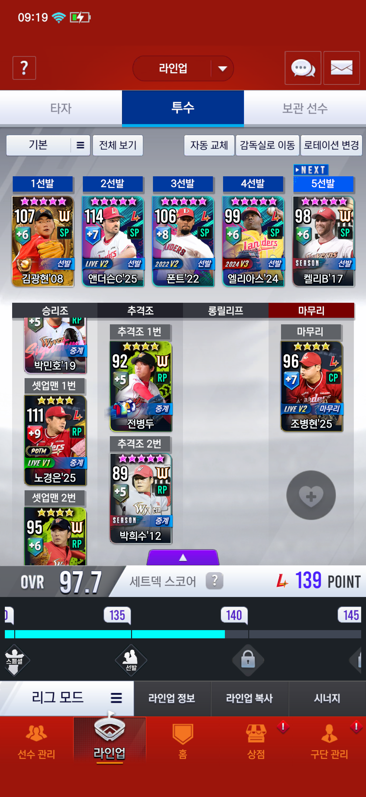 그리고 베포랑 조커코인 그리고 대표타자 고를수있는데