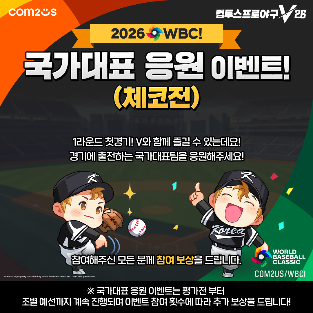 [이벤트] 2026 World Baseball Classic 기념 국가대표 응원 이벤트(체코전) 안내 [03/19(목) 참여 횟수 보상 지급 완료]