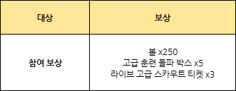 - 참여해주신 모든 구단주 분들께 참여 보상을 드립니다!