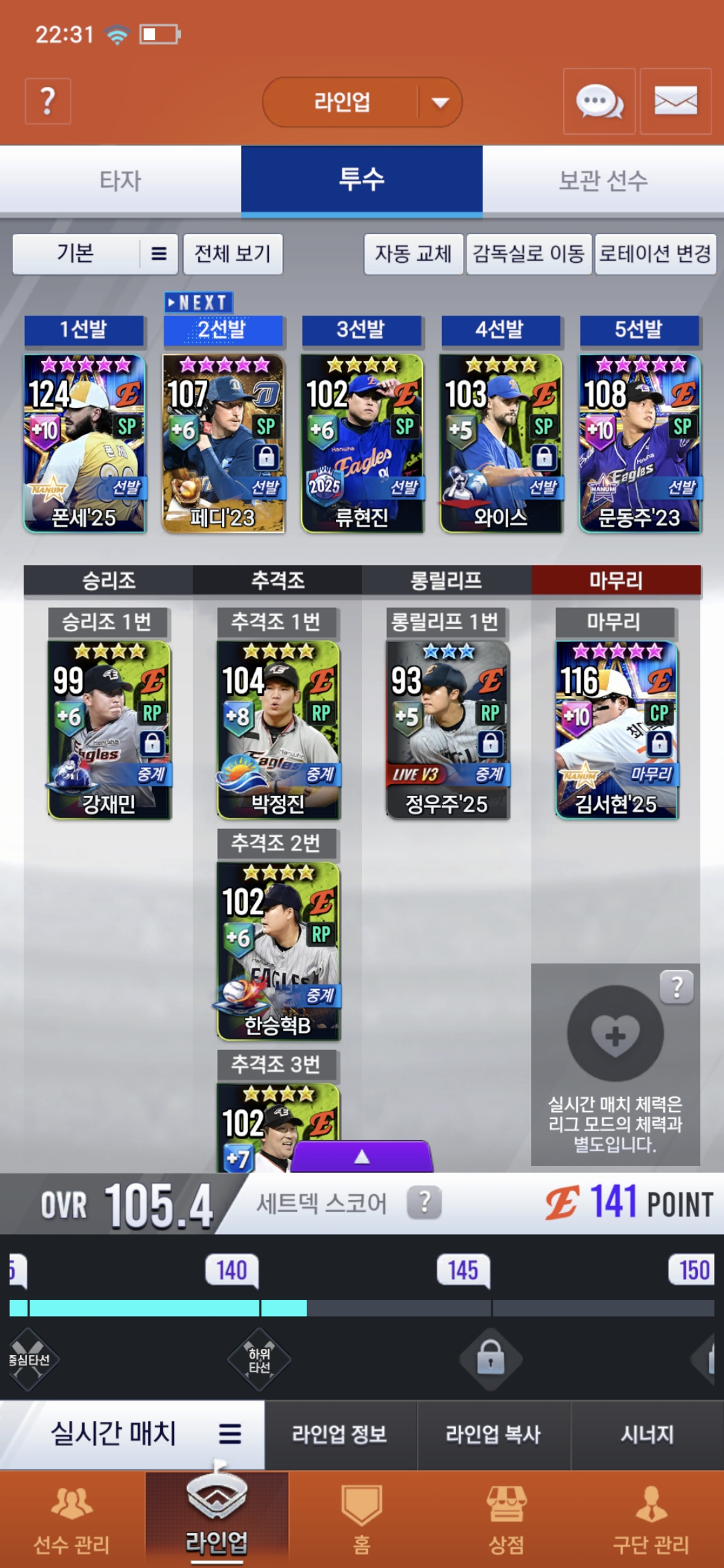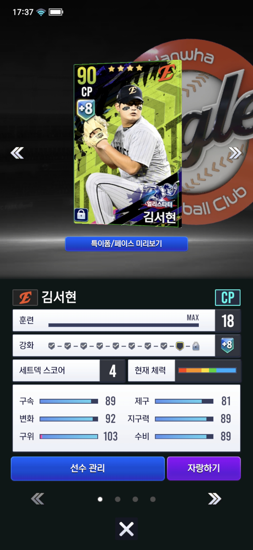 +김서현은 팬심이기도 하고 얼리스타터를 뽑았어서 마무리로 쓸 계획이어서 다른 선수 추천 해주심 감사하겠습니다😄😄