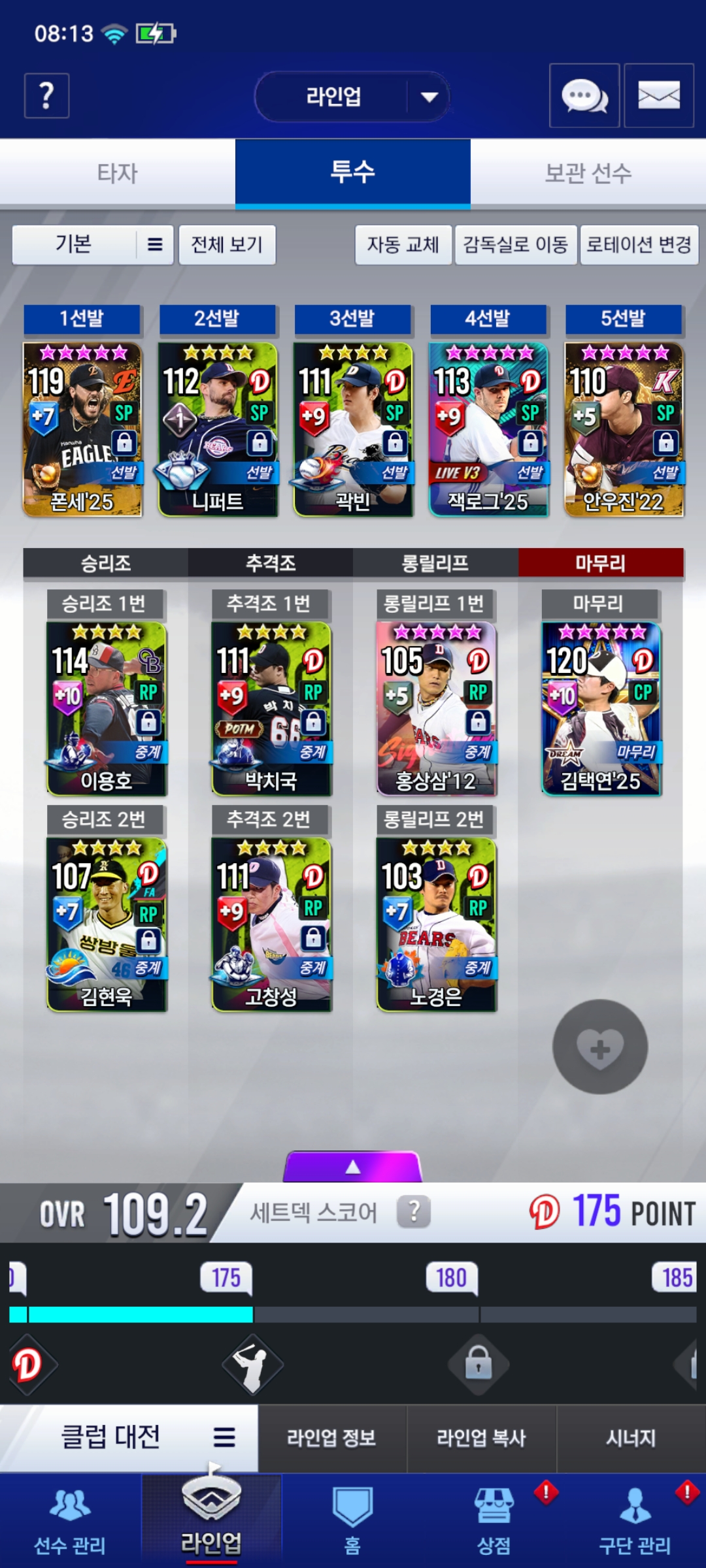 2. 18덱을 목표로 두고 있었는데 18박뱅이 너무 안 떠서..18연도로 묶을만한 건 18국재환 18최주환 18김재호 18국의지(보관함 대기중) 정도인데 그냥 16덱으로 리빌딩해야 할까요?