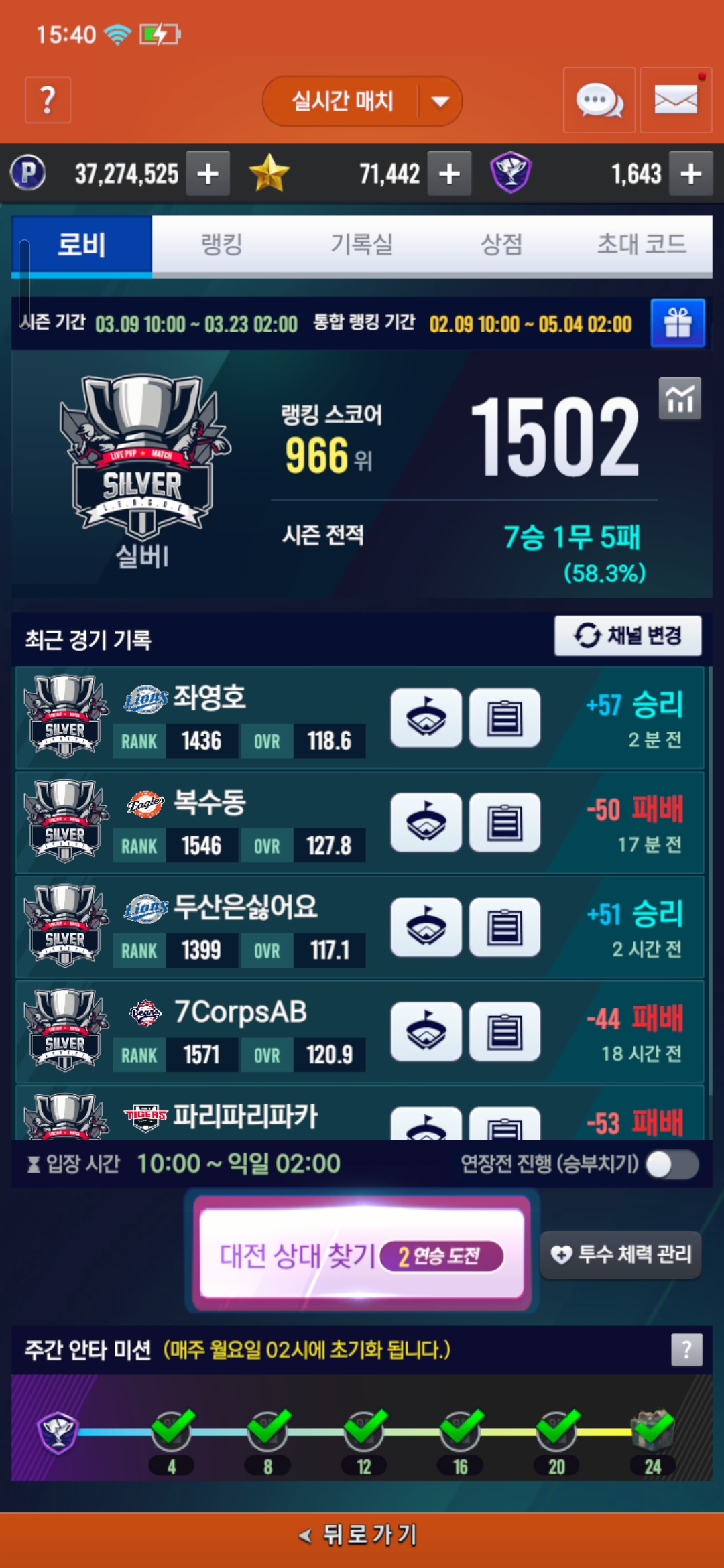 전체글 도전과제 실대 1회 승리 미완료 버그 LV쏠랑 2026-03-12 15:42 46 0 공유 공유 URL 복사 페이스북 왓츠앱 카카오톡 라인 레딧 닫기 공유 실대 1승 하였는대 미션 미완료 뜹니다확인 부탁드립니다 1 0 댓글 0