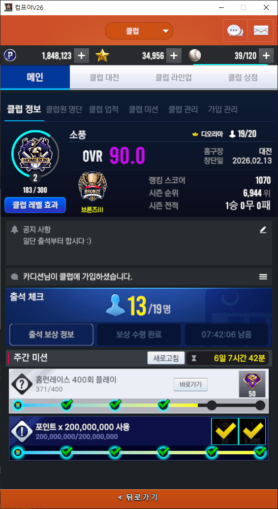 일단은 클럽 대전이