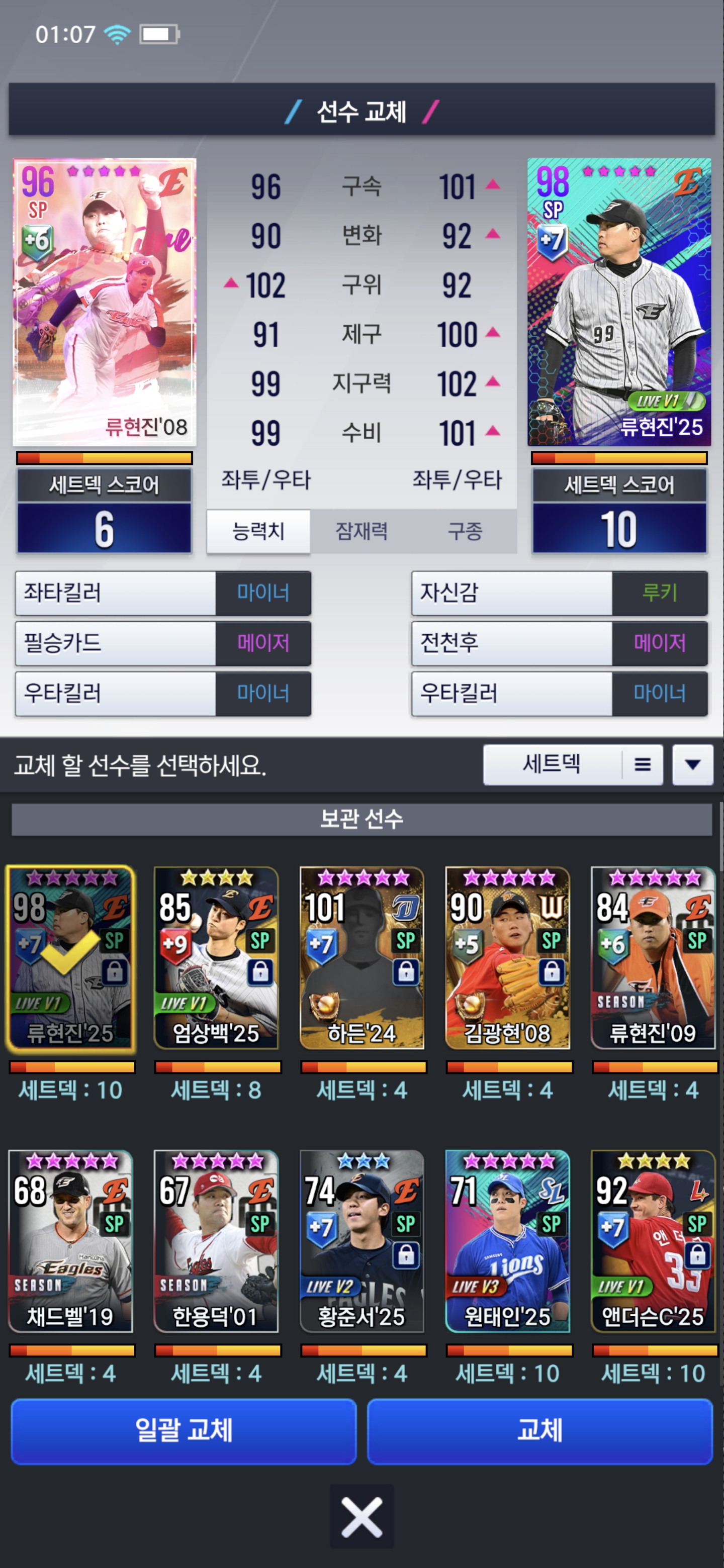 1티어 까지는 아니어도 시그 류현진이 더 좋다는데 잘 모르겠습니다