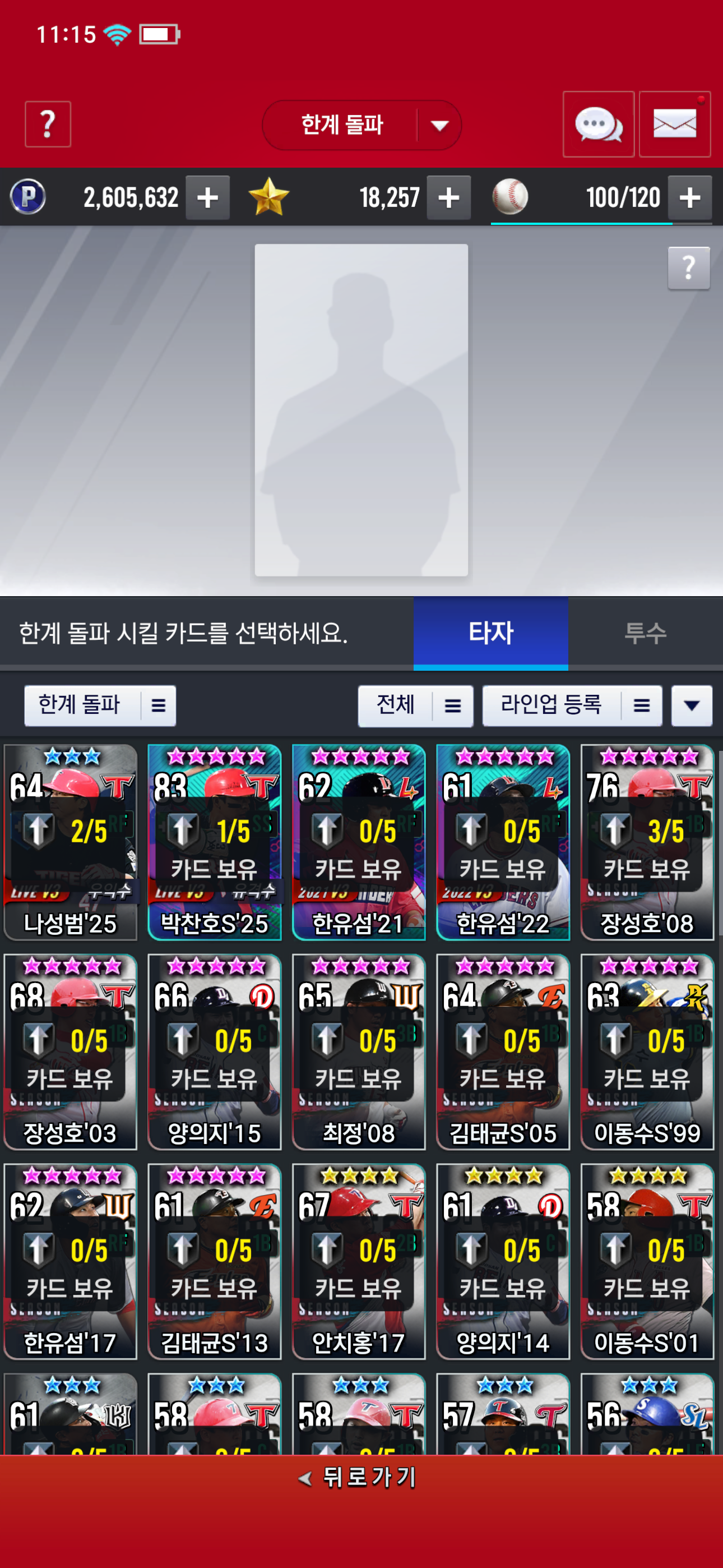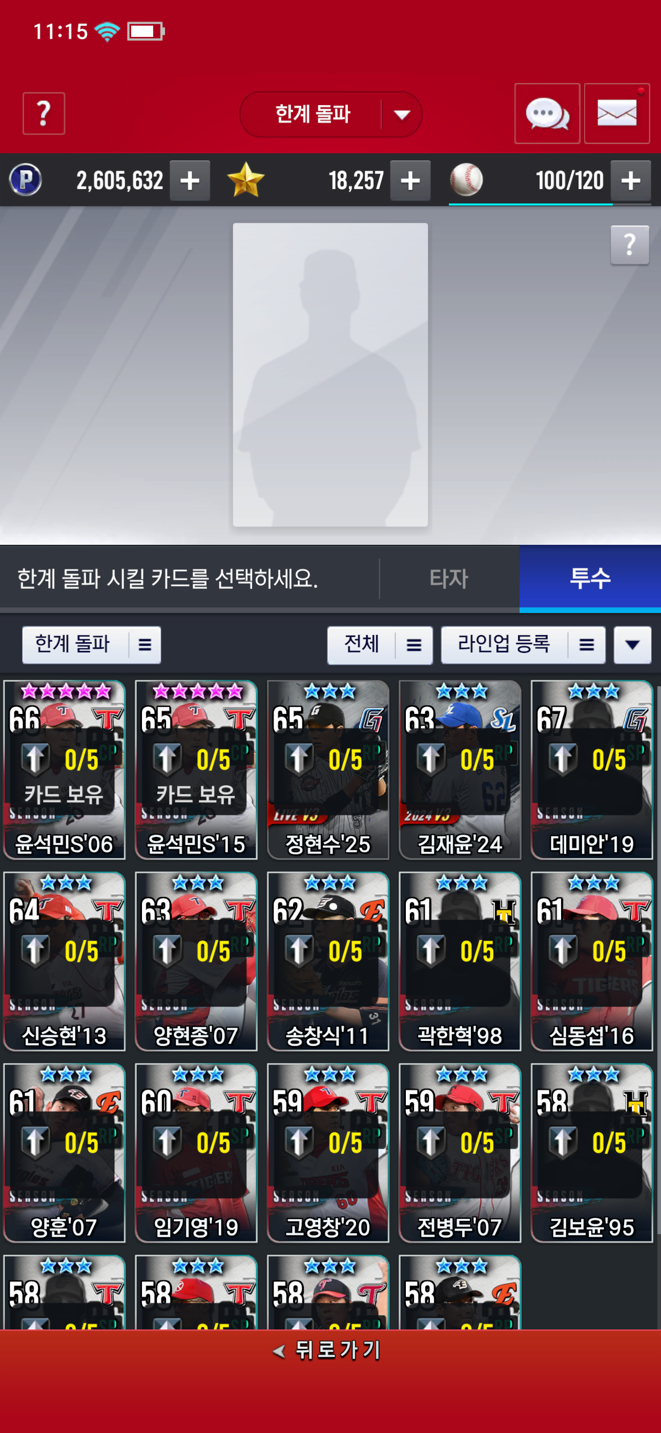 한계 돌파에 들어가면 모든 카드가 나타나지 않고 일부 카드만 표기돼요.