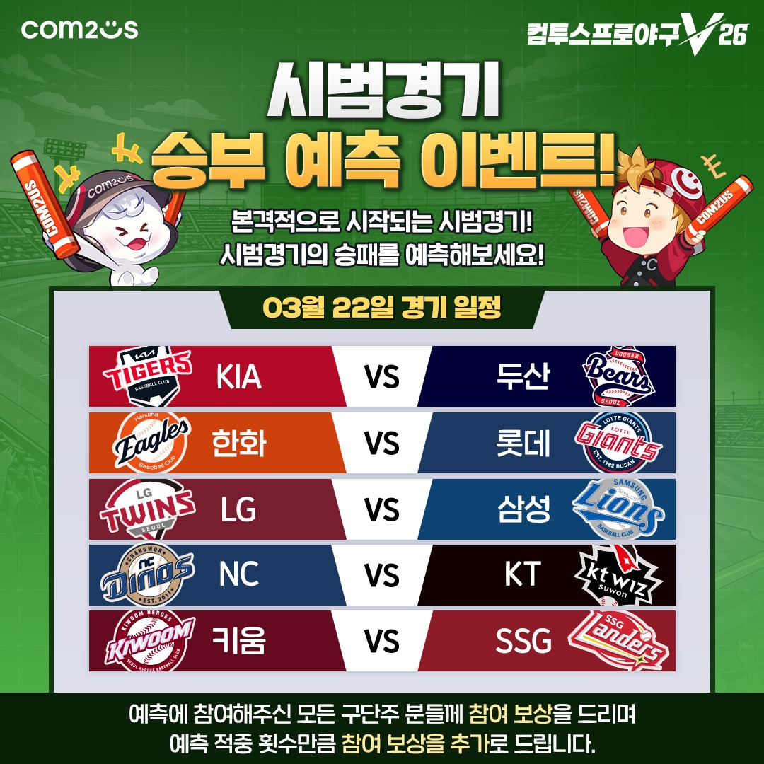 ■ 시범경기 승부 예측 이벤트(03/22) 안내 [~03/22(일) 13:00]