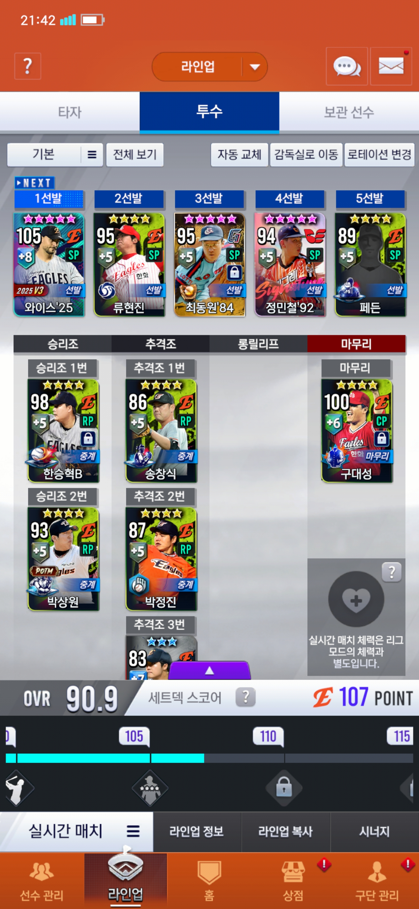 그리고 선발교체는 페든?선동렬?류현진? 어떤거 교체하는게좋을까요