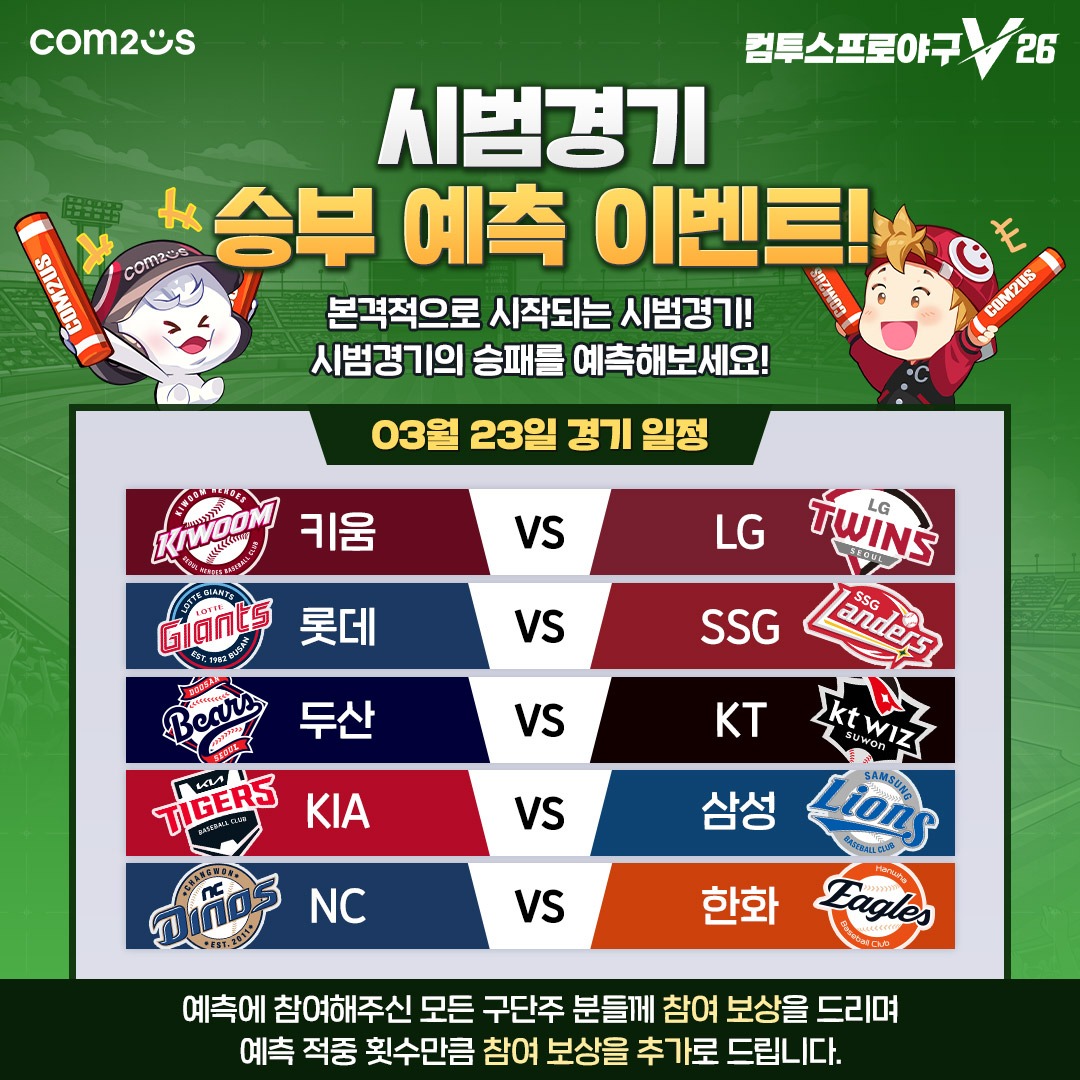 ■ 시범경기 승부 예측 이벤트(03/23) 안내 [~03/23(월) 13:00]