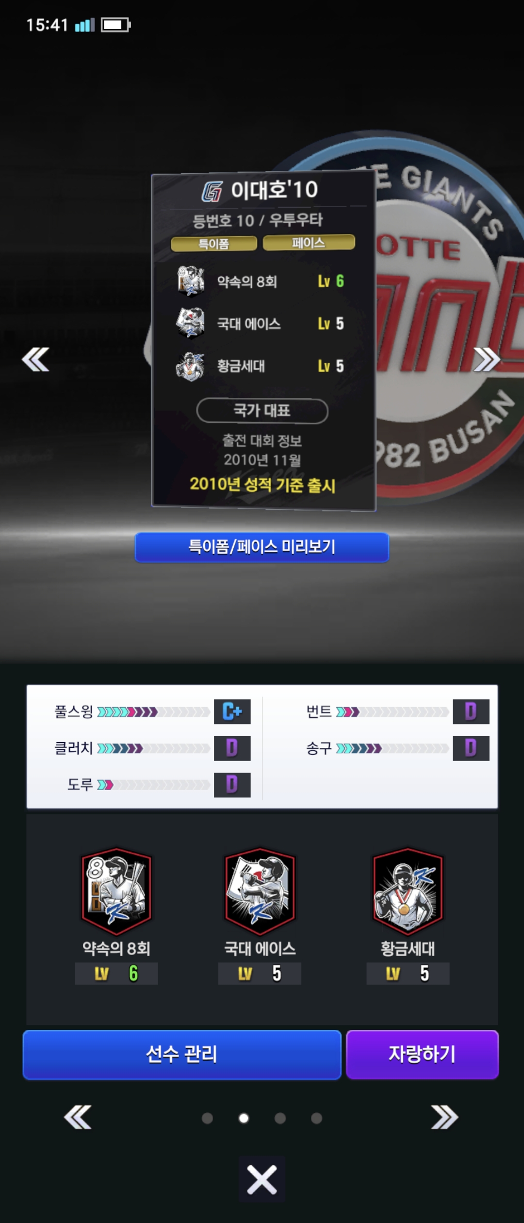 저 이 계정 만든시 1년도 안되었고 현질은 오로지 전지훈련만 3번정도 했습니다. 이대호 좀 봐주십시오