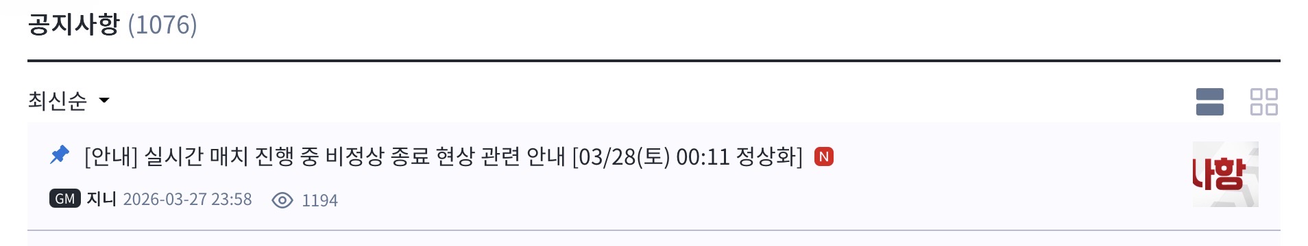 실시간대전 오류 발생