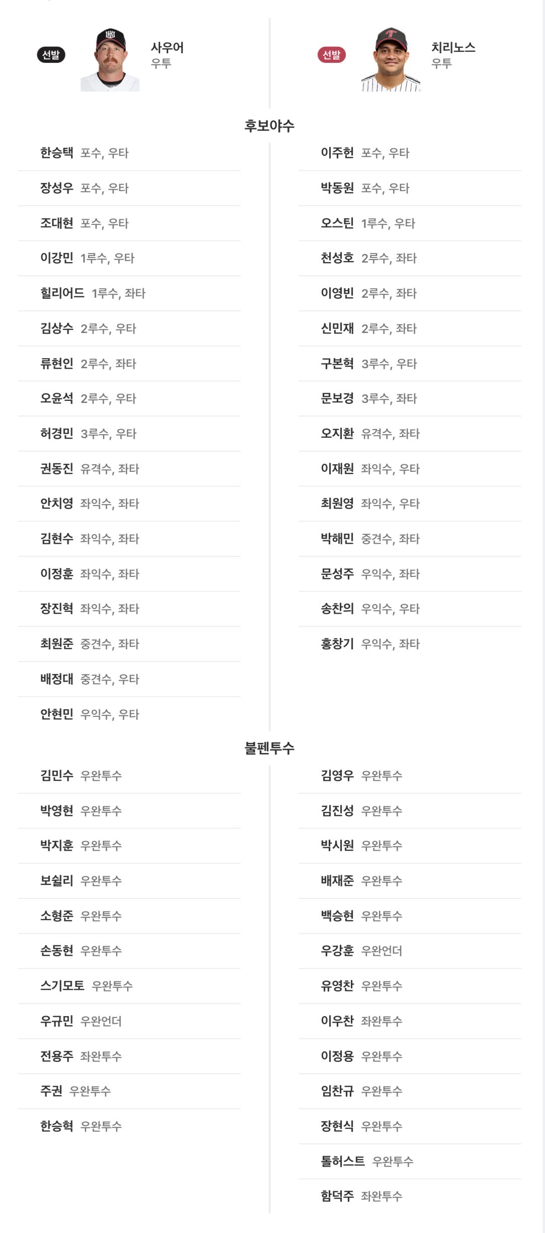 사우어 6이닝 , 전용주 1이닝, 스기모토 1이닝 , 박영현 1이닝