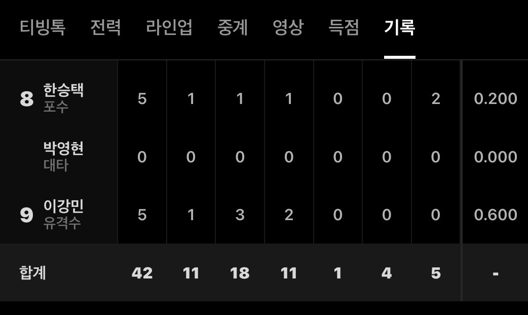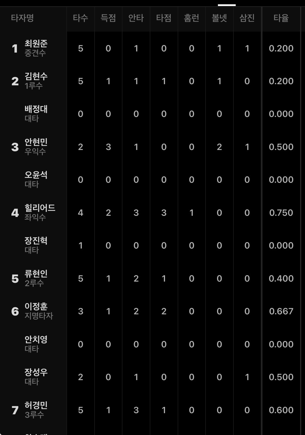 몸맞는 공 2개 볼넷 2개 안현민 보면서 지렸습니다