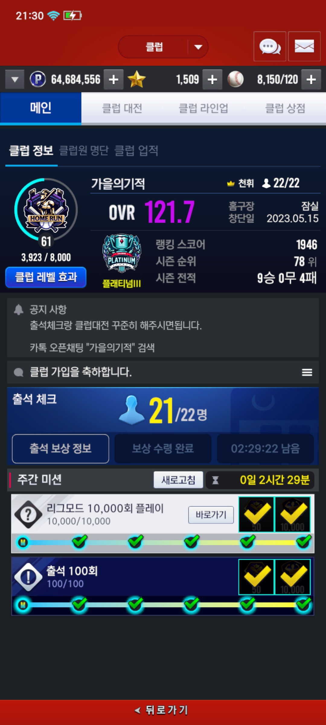 -한 달에 한 번 소정의상품을 걸고 클럽 내전과 이벤트를 진행 중입니다.