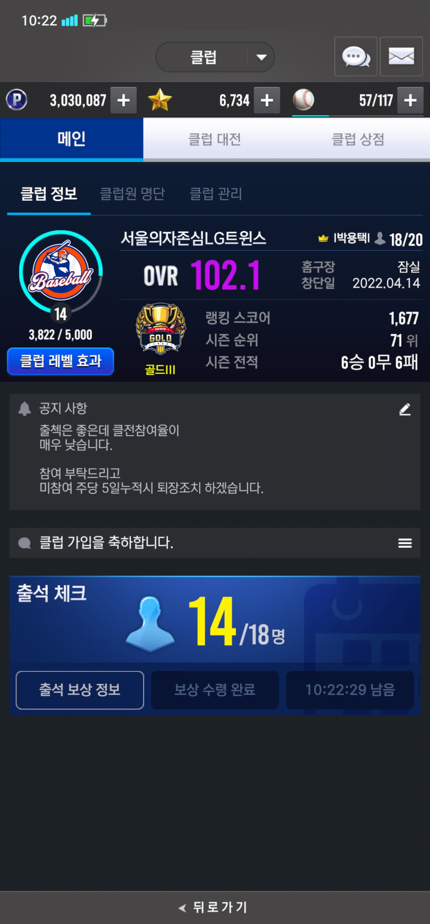 클전 , 출첵만 잘해주세요