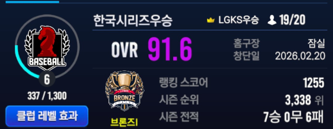 1군 : 한국시리즈우승(잠실, 승인 가입(조건 만족),19/20)