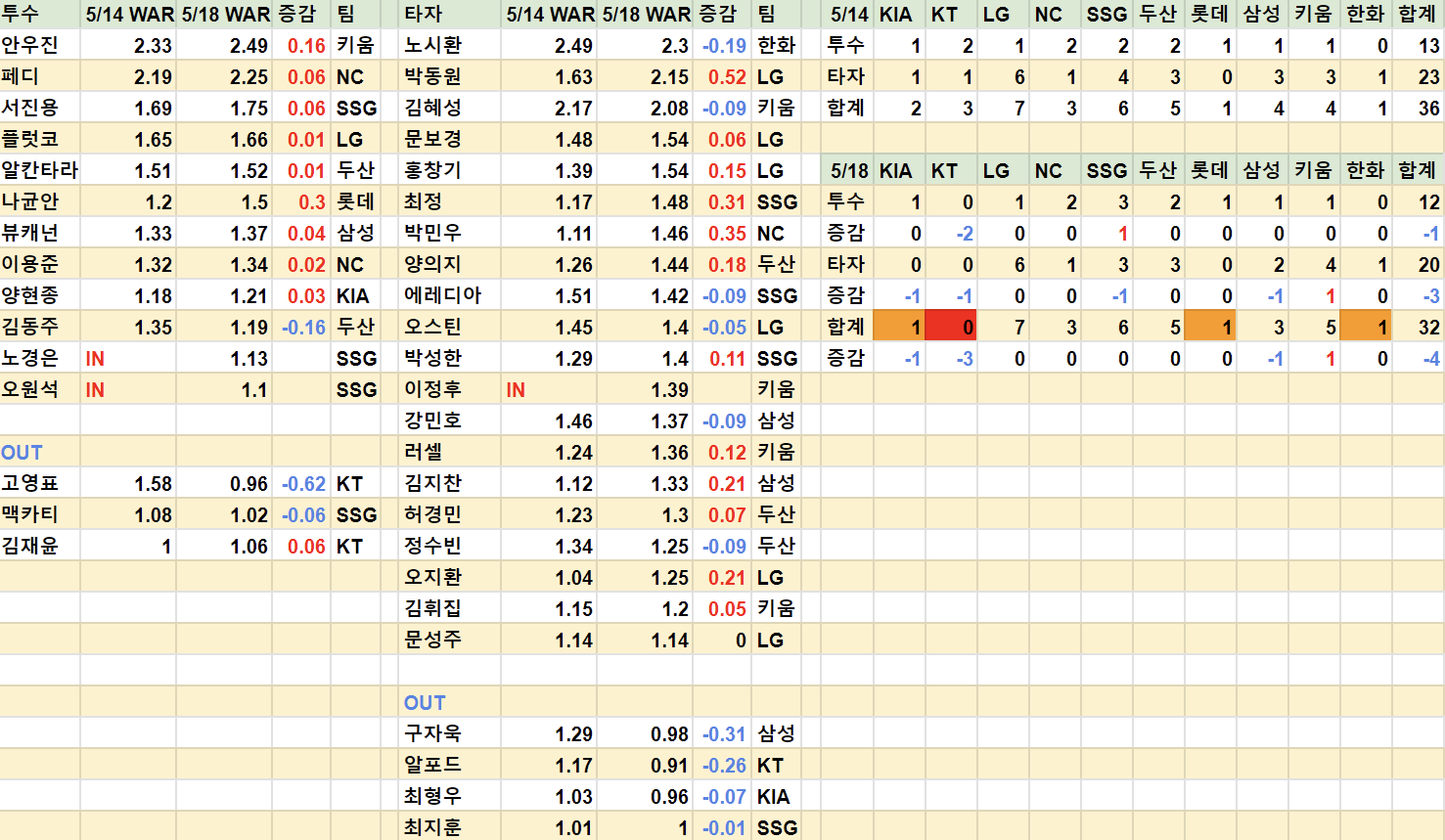 - - OUT : 구자욱(삼성), 알포드(KT), 최형우(KIA), 최지훈(SSG)
