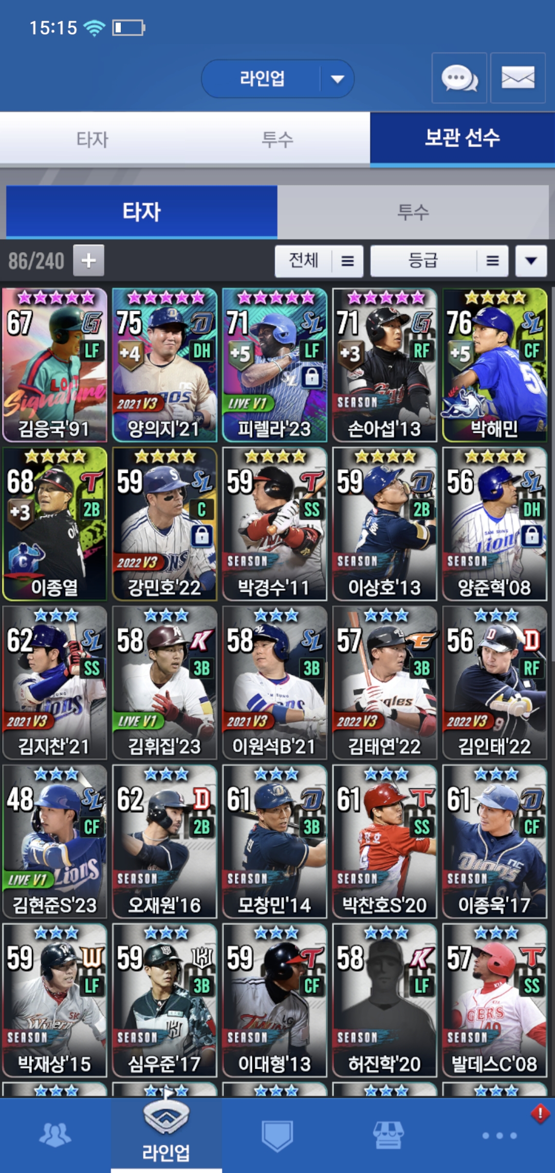 김응국 양의지 손아섭 선수가 조합이나 강화를 누르면 안보입니다. 어디에도 배치가되어있지가 않은데 이유가 멀까요?