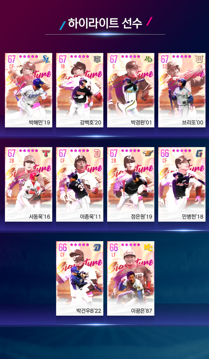 구단별 1종의 시그니처 카드를 대상으로 픽업 스카우트가 진행됩니다.