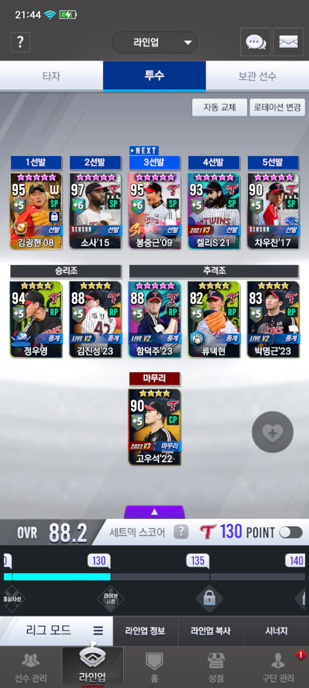 일단 종결선수들 모으기부터 하고있는데, 현재 팀이면 류지현 봉중근 정우영 정도는 계속 키우고 나머지 선수들은 바꿔나가야할까요??