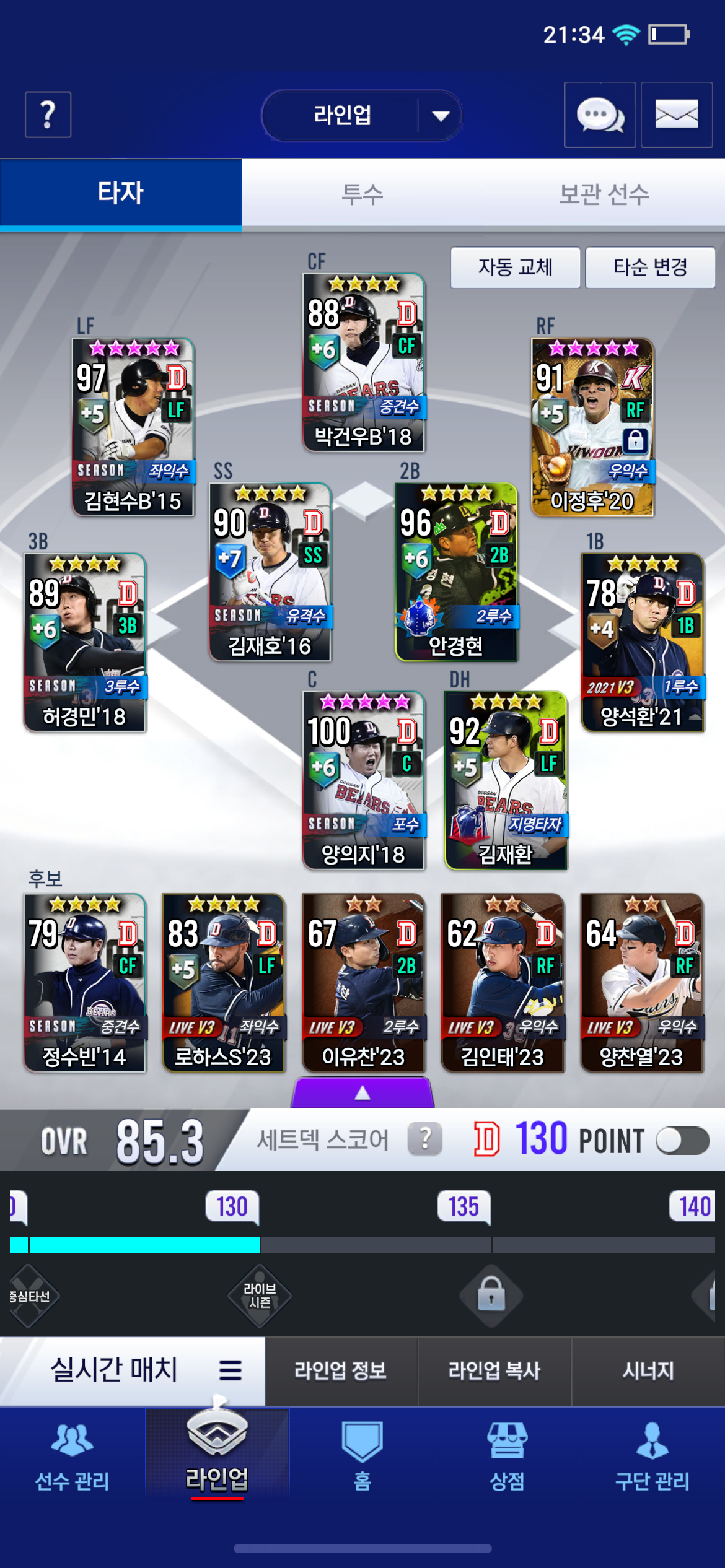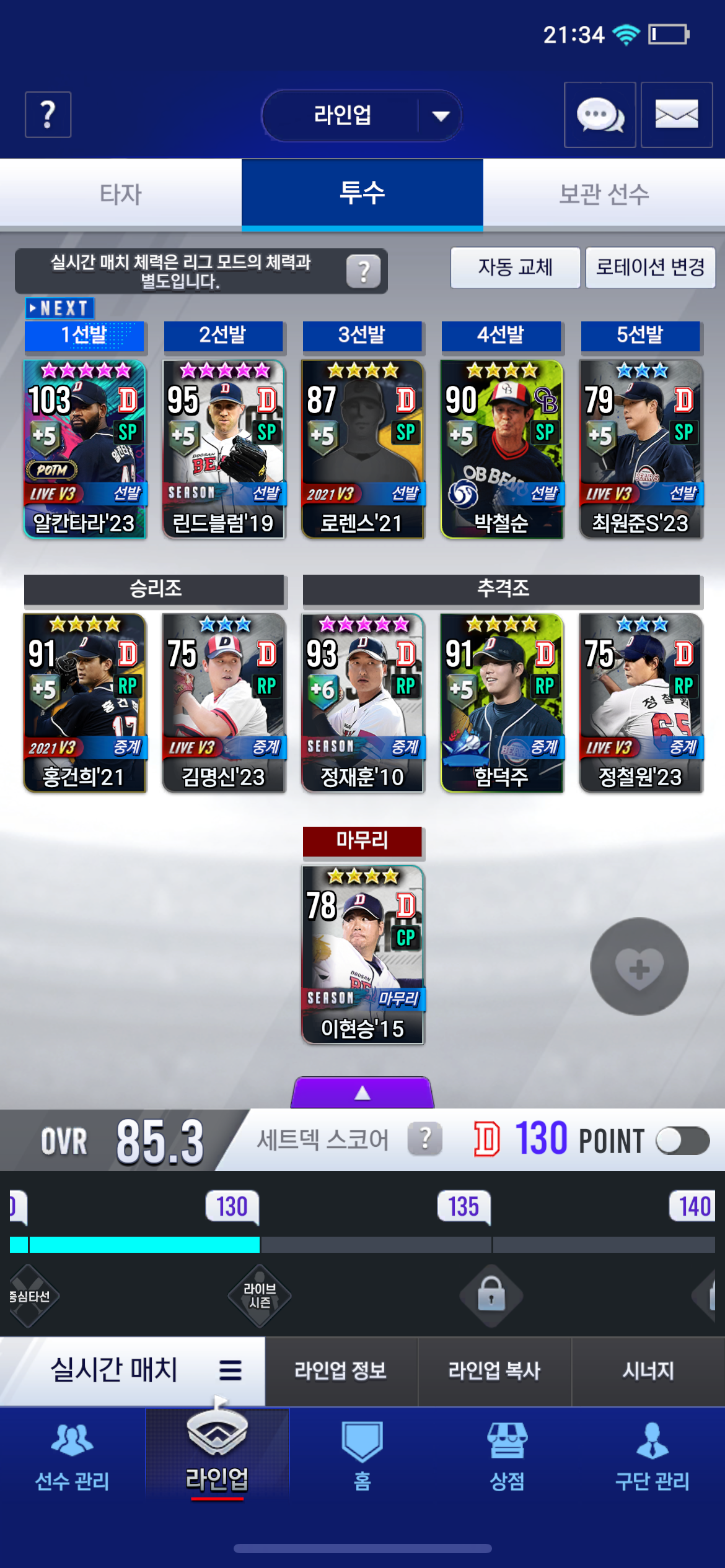 무과금 두산 정확히11일차 입니다 오프시즌 스카우트 물 뽑으명 좋을까요? (1루수는 선호구단 이벤트로 우즈 먹을겁니다)