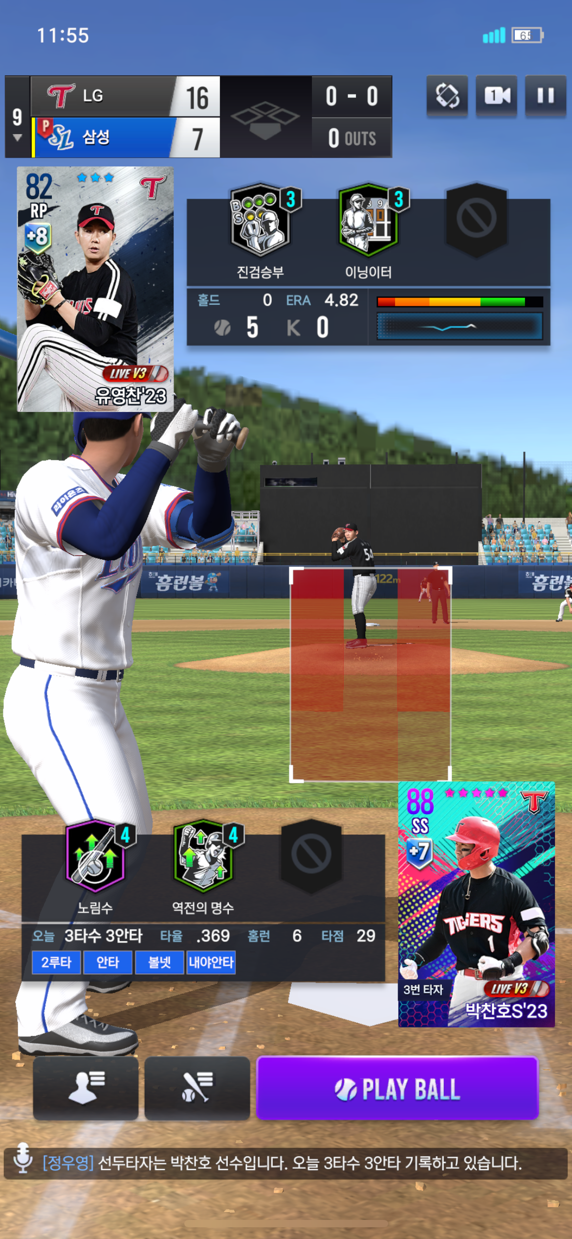 중간에 타선 터져서 치려고 하면 자동으로 넘기고