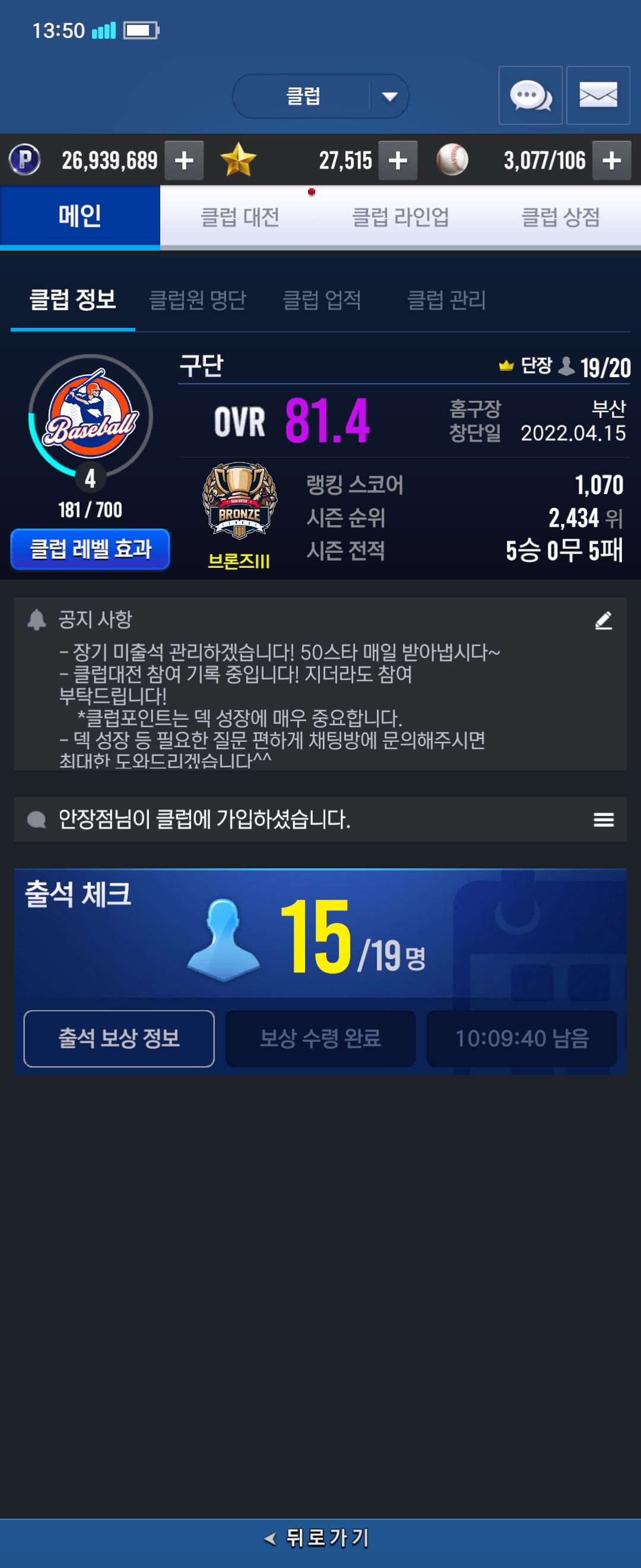 [구단] 신규,복귀 유저를 위한 클럽! 함께 하실 분 모십니다 (옵 80이상,19/20)