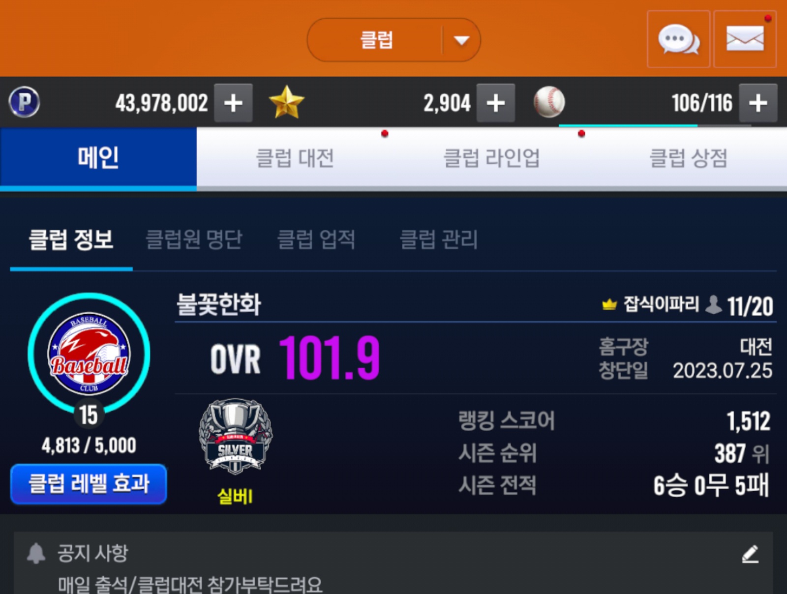 최근 클대 미참여인원 관리되어 인원이 빠졌습니다.