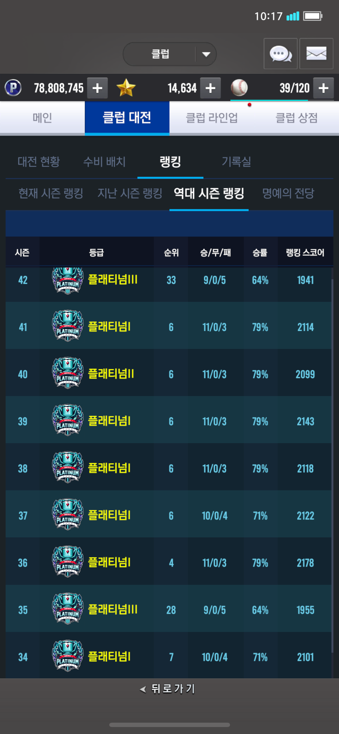 클럽대전 성적은 최근 10시즌 중 8시즌 10위 안으로 마감하였습니다.