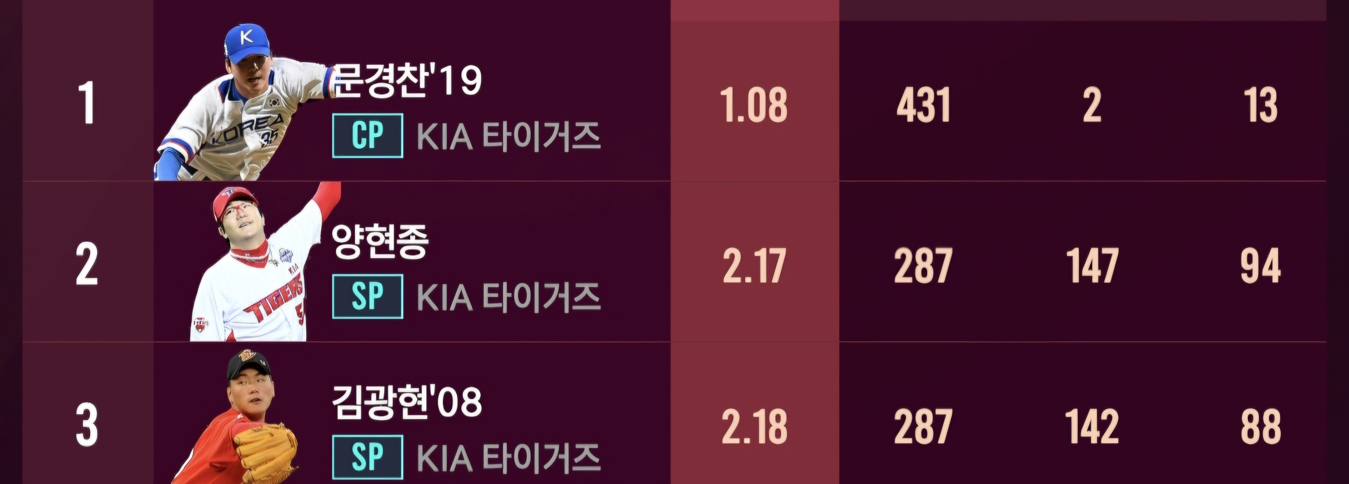 기존 임팩트 같은 경우 10구단 통틀어서 가사 양현종이 최고의 스탯을 가졌었지만, 임팩트는 요런식으로 자꾸 새로 내기 때문에 임팩트에 영원한 종결이란 존재할 수 없음..