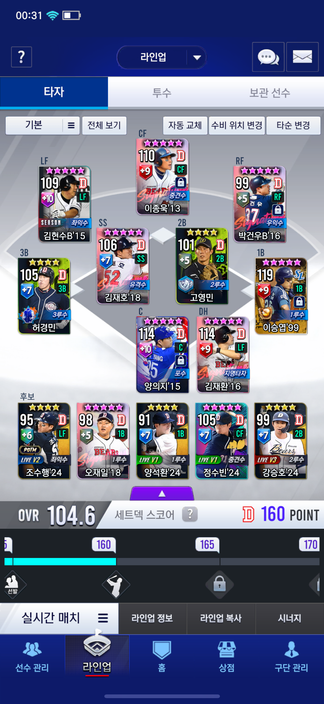 나중에 지명타자 최주환 시그 뽑고 김재환 좌익 올리고 하려는 데 어디를 손 봐야 할까요 ?