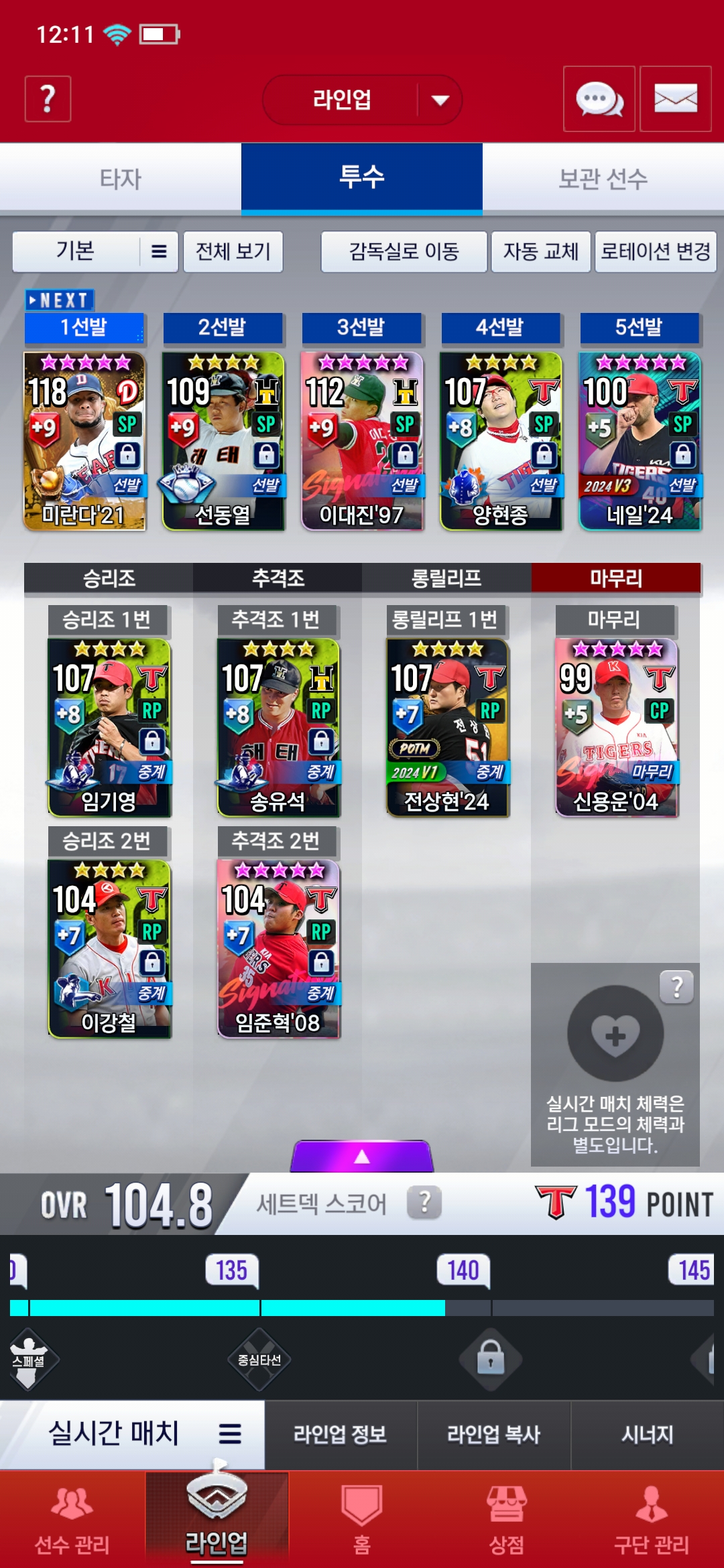 만약 시그 이강철을 써야한다면 필계 이강철 대신에 시그로 바꾸면 누구를 빼야하나요?(오프시즌 시그 선택팩에서 브룩스 먹고 네일 뺄 예정입니다.) 그리고 불펜에 누구를 넣어야하나요?