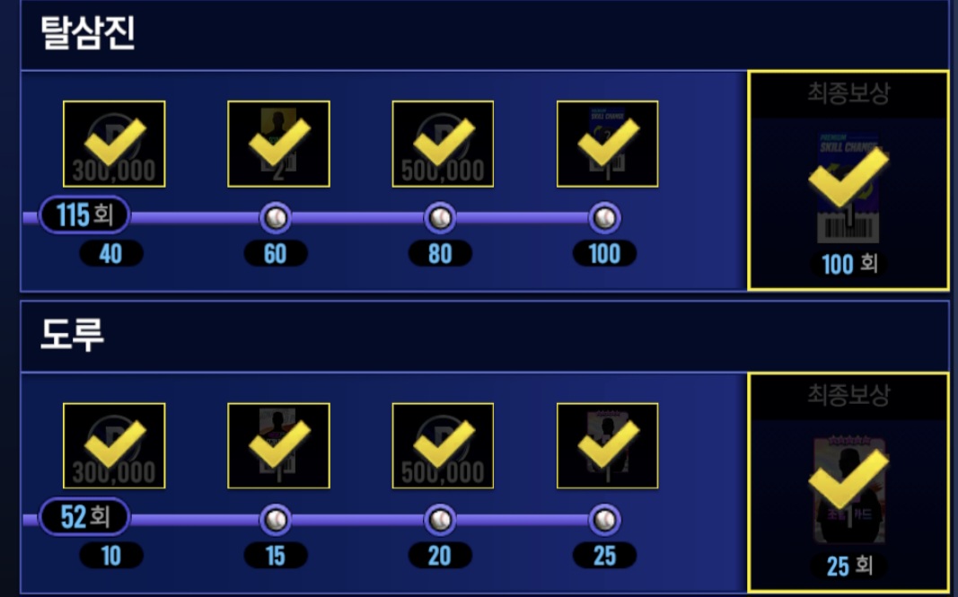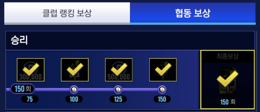 제 1회부터 3회 클럽 승부치기 주요 보상 달성률 100%!